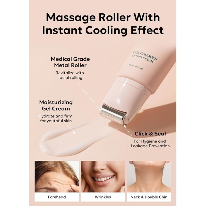 Bewants Cica Collagen Lifting Cream with Massage Roller (2 pack) - Centella Asiatica Soothing Korean Moisturizer for Oily Skin, Neck Wrinkle Care, Instant Face Lifting, Vegan, Cruelty-free, 1.7 fl oz