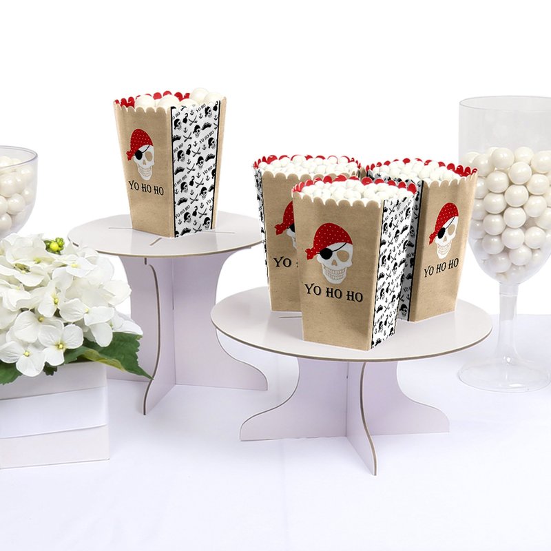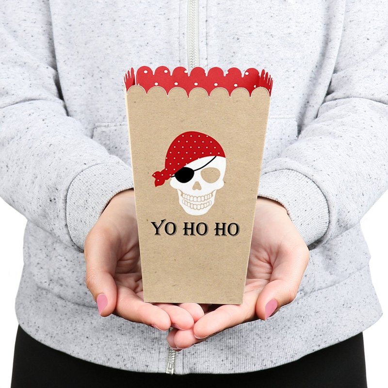 - POPCORN BOX PARTY SUPPLIES: Beware of Pirates popcorn boxes will hold a variety of party food. Fill them with sweet treats or salty snacks. Popcorn, caramel corn, candies and other goodies will look amazing on your candy buffet with these pirate favor boxes.