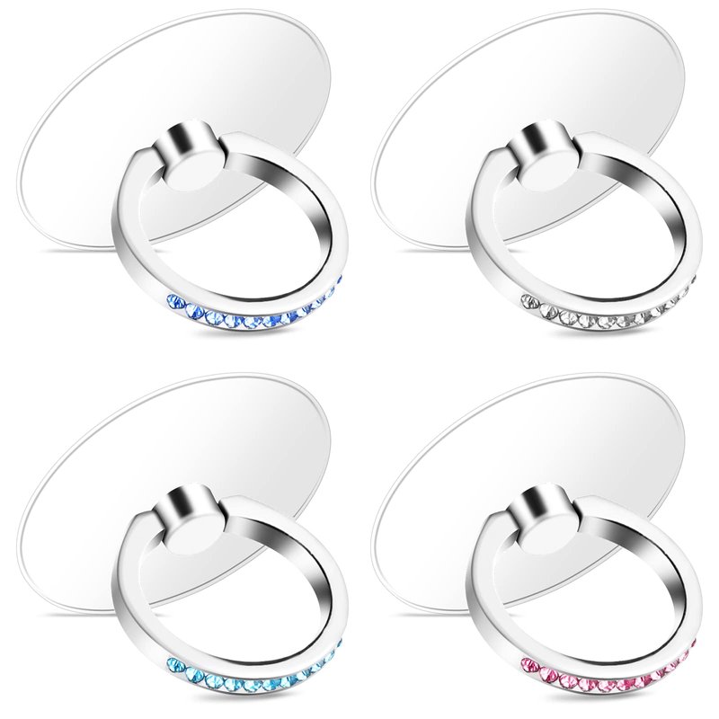 Bewudy 4 Pcs Diamond Phone Ring Holder Grip, Transparent Cell Phone Finger Ring Grip Kickstand, 360° Degree Rotation Finger Ring Stand, Compatible with Most of Phones Tablet and Case
