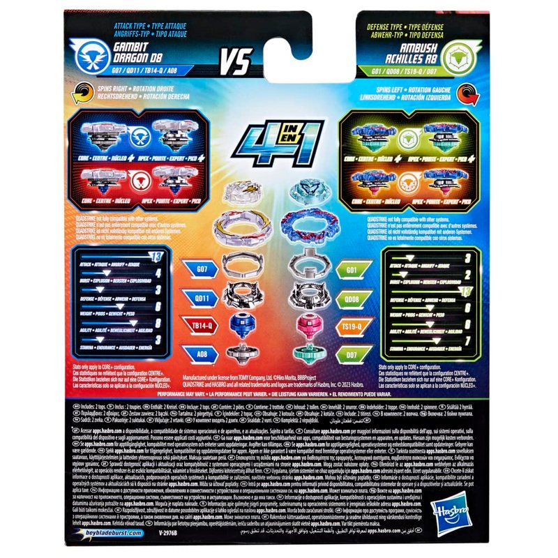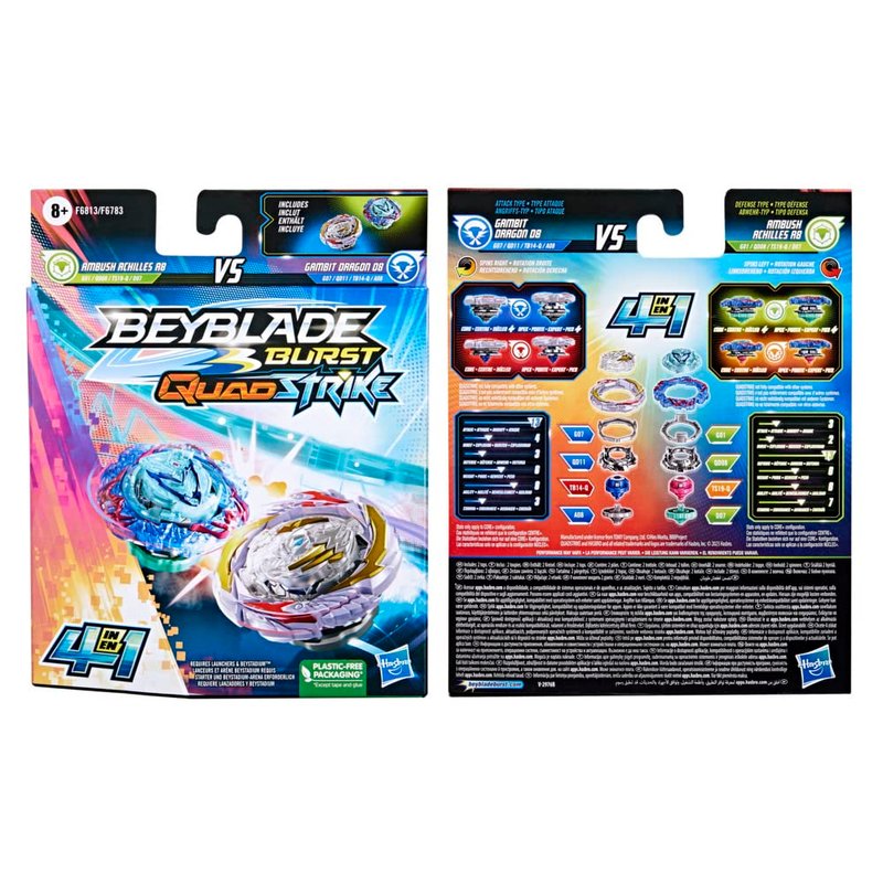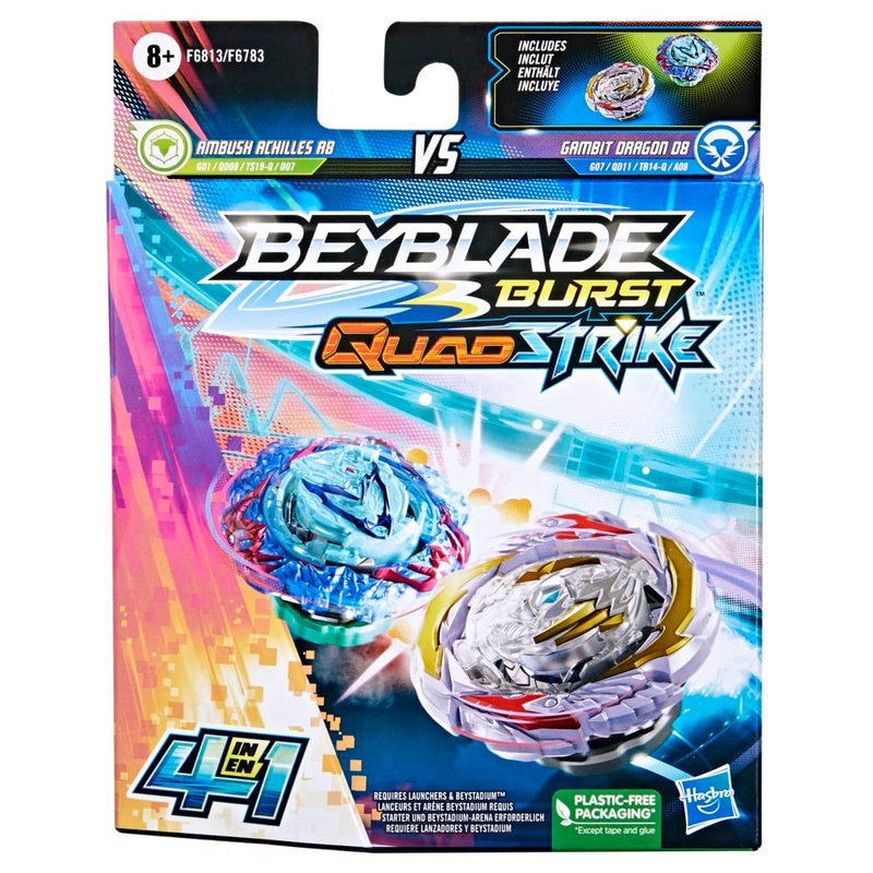 Beyblade Burst QuadStrike Dual Pack, Gambit Dragon D8 & Ambush Achilles A8 Competition Spinning Top