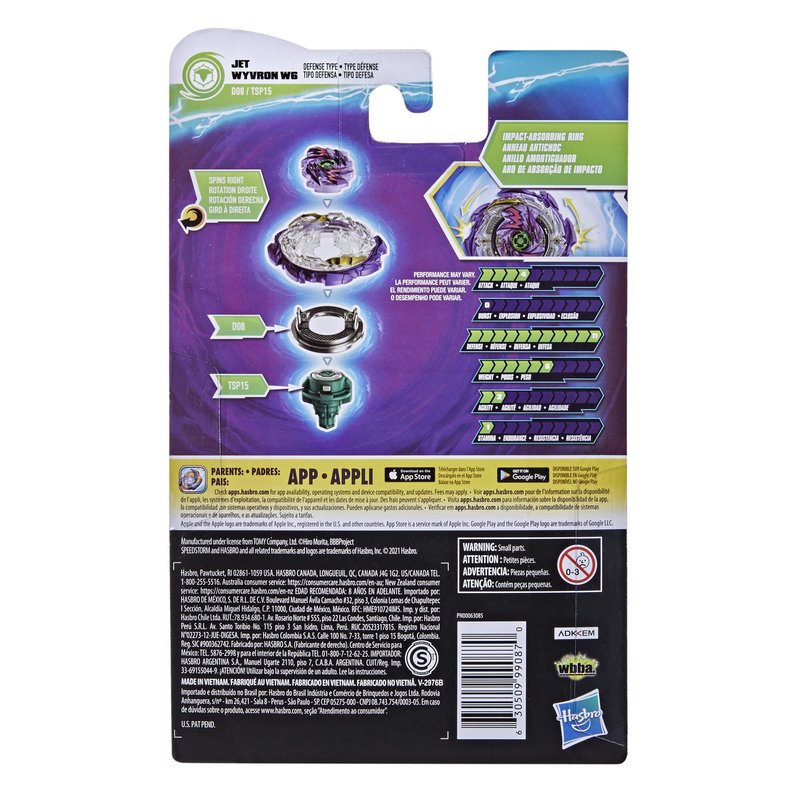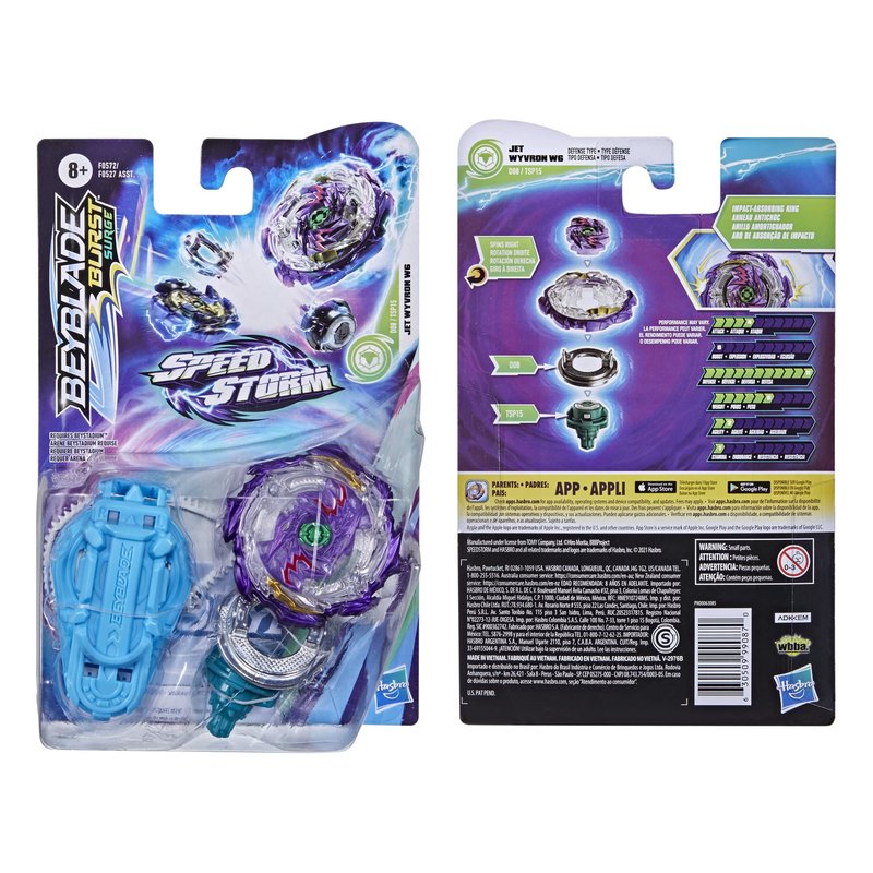 - SPINNING TOP FOR BEYBLADE BURST BATTLES: Includes right-spin Beyblade Burst Surge Speedstorm Jet Wyvron W6 D08 TSP15 defense type top and launcher