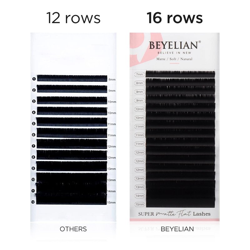 - ITEM SPECIFICS of Ellipse flat eyelash extension: C curl, 0.15mm; 16 rows, approx 4480 lashes per tray, service for 18-22 clients; made with Korea synthetic fiber-environmental protection material; Assorted Lengths: 7mmx1 8mmx1 9mmx2 10mmx2 11mmx3 12mmx3 13mmx2 14mmx1 15mmx1