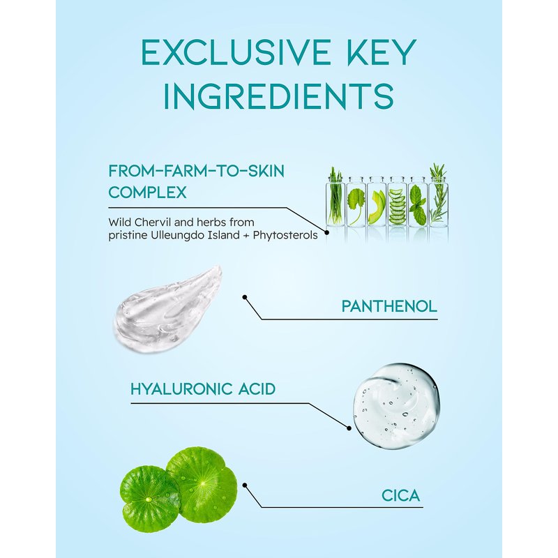 - FROM-FARM-TO-SKIN COMPLEX - Harnessing the nourishing power of native plants grown on pristine Ulleungdo island for over 20,000 hours, this exclusive complex includes extract from the unique island plant, cow parsley. This complex is fortifies the skin barrier, promotes skin soothing, and effectively reduces redness, leaving your skin calm, revitalized, and radiant.