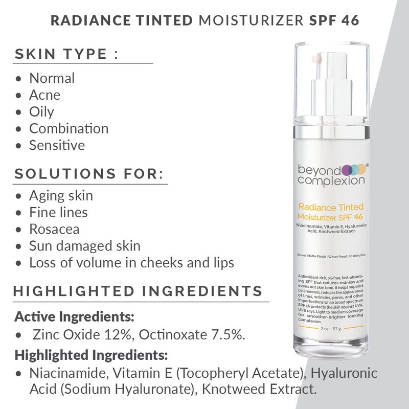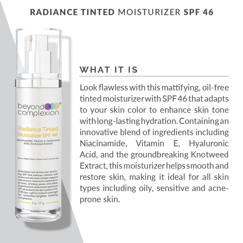 Beyond Complexion Radiance Tinted Moisturizer SPF 46 - Oil-Free Tinted Moisturizer that Adapts to Your Skin Color to Enhance Skin Tone with Long-Lasting Hydration