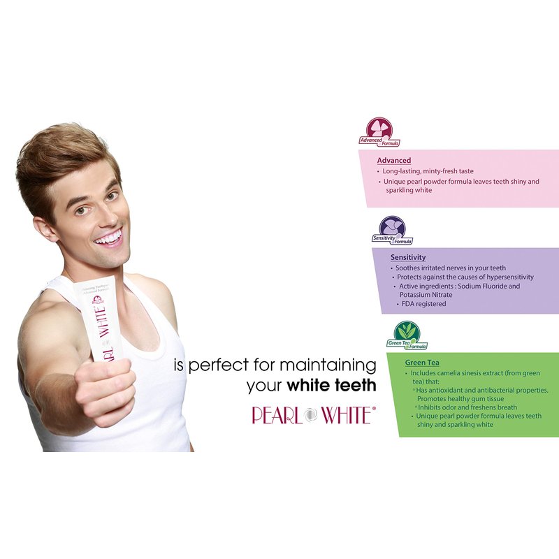 - Developed by a cosmetic dentist, Pearl White toothpaste is designed to both gently brush away surface stains as well as provide tartar control. Our formula contains micro-crystals that burst and whiten teeth while you brush. Our teeth whitening toothpaste contains quality ingredients freshens breath while supporting enamel mineralization that enables superior whitening results.