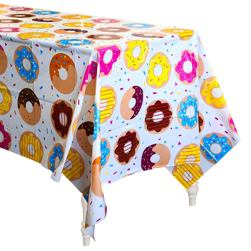 - PINK SWEET CELEBRATION - The plastic table covers designed with colorful donut patterns are perfect decoration to your kids donut themed party. It could be desktop decoration as well as a donut photo background by hanging on the wall or door, make your kids' birthday parties or baby shower into a magical fairy-tale event!