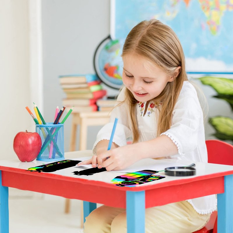 - HIGH QUALITY: Scratch paper art is all made of high quality paper and natural wooden stylus. Scratch powder is easy to remove. It allows children to explore art freely and give full play to their imagination and creativity.