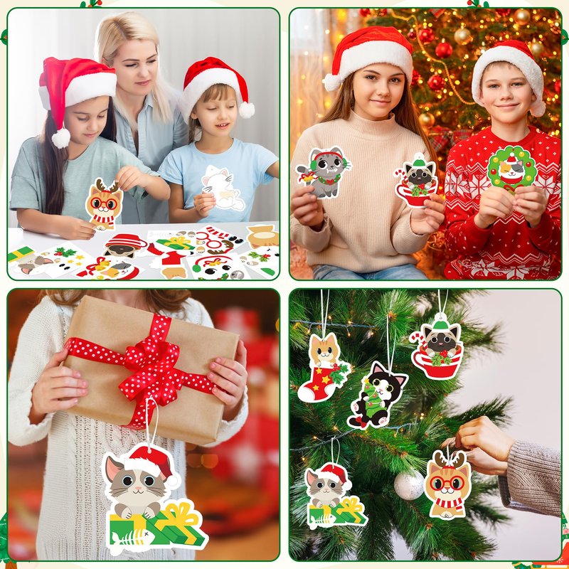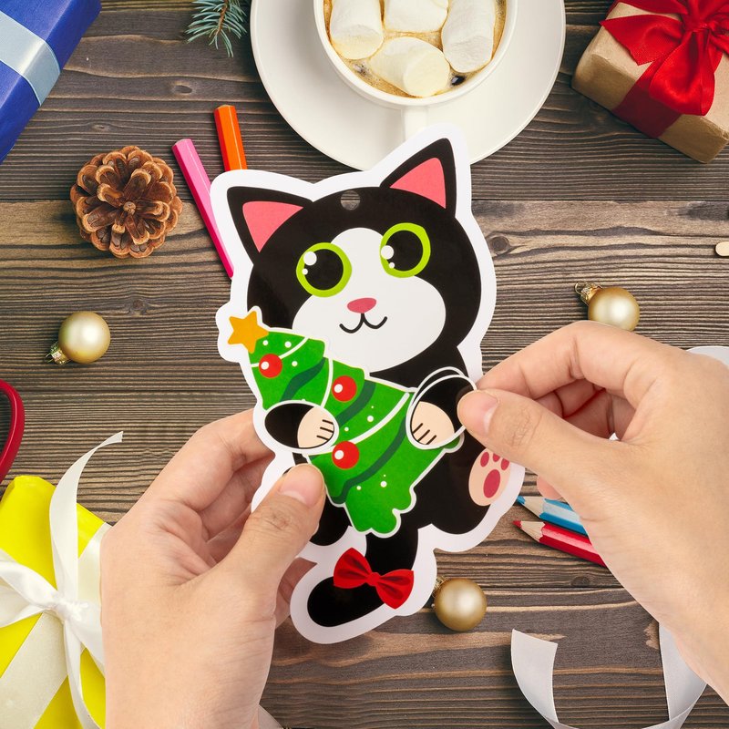 - All-Inclusive Craft Supplies: This set comes with everything needed for crafting, from the cards and stickers to the ribbons, ensuring that children can easily make and hang their own kitten-themed Christmas decorations.