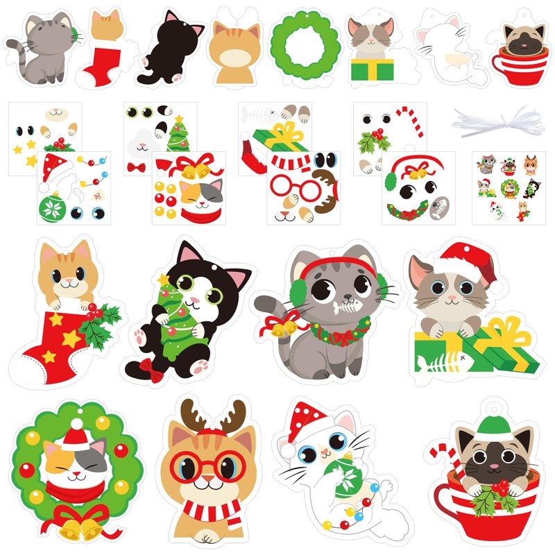 - Christmas Cat Craft Kit: Our kit offers 123 pieces for creating DIY hanging ornaments, including 40 Christmas Cat Cards in 8 styles, 40 Christmas Stickers in 8 styles, 42 White Ribbons, and an Example of a Finished Product, perfect for cat enthusiasts.