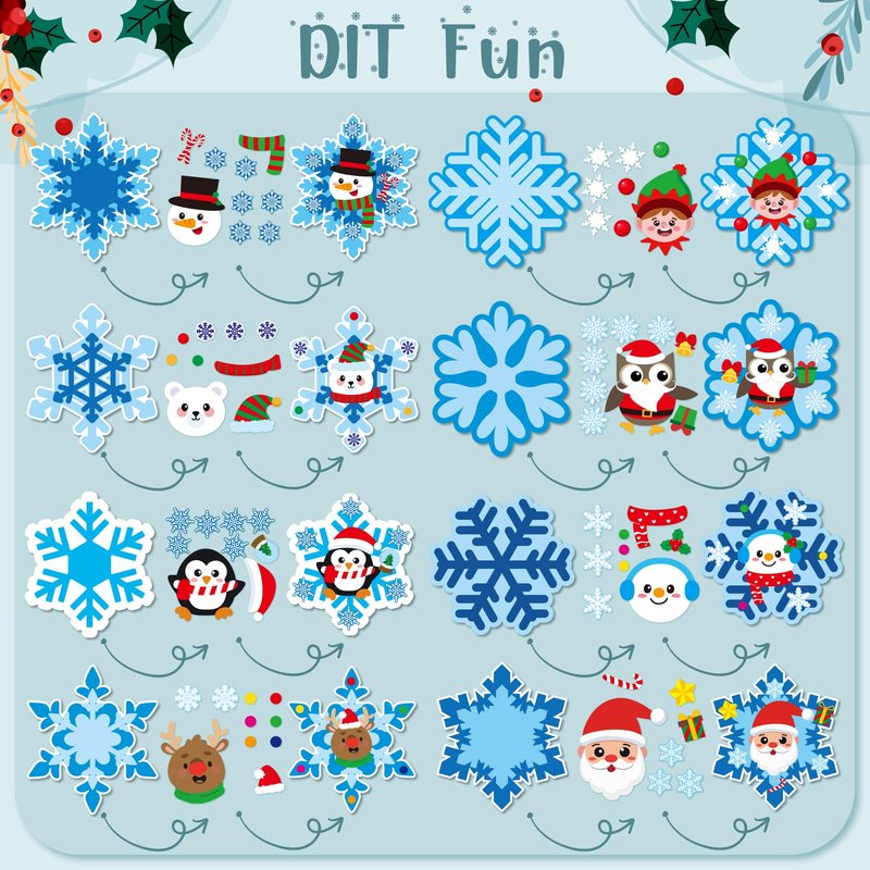- Winter Snowflake Craft Kit: Our Christmas Snowflake Craft Kit comes with 123 pieces, including 40 snowflake cards in 8 different styles, perfect for creating a variety of winter-themed hanging ornaments