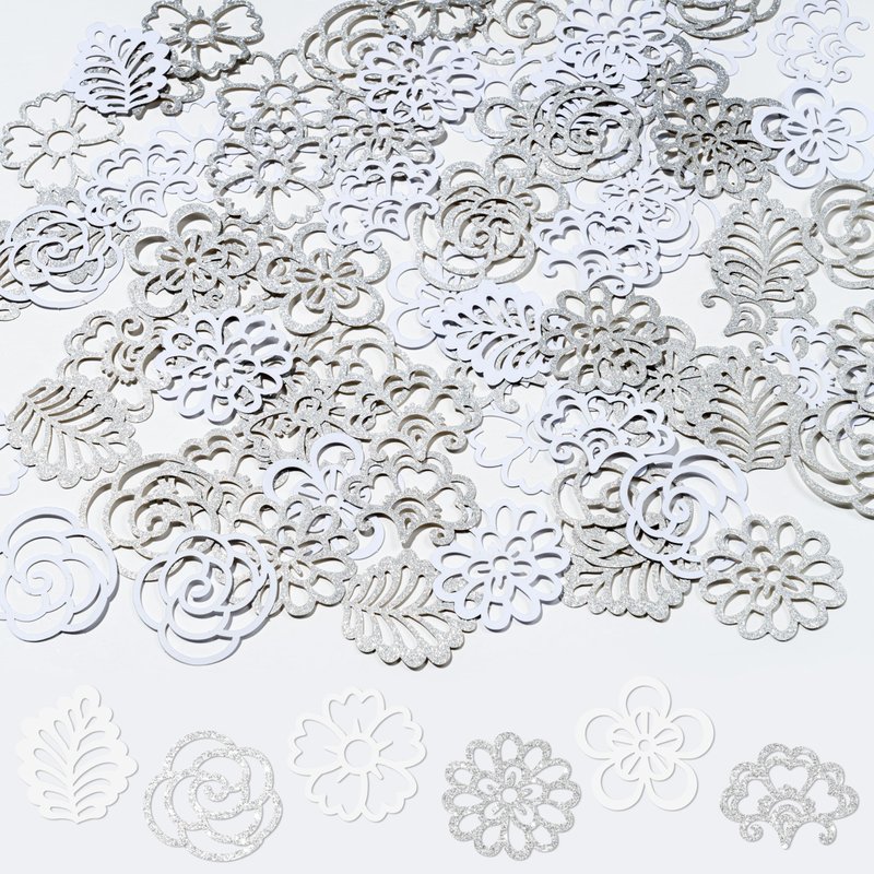BeYumi White Lace Table Confetti - 300Pcs White Lace Flower Bridal Table Confetti Decorations Table Glitter Confetti White Paper Confetti Decor for Wedding Engagement Party Bachelorette Party Supplies