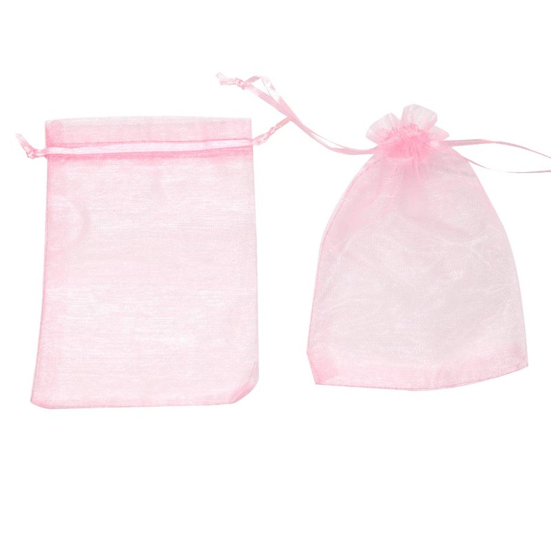 Bezall 100Pcs Organza Bags 5x7 Inch, Pink Sheer Baby Shower Party Favor Bags with Drawstring, Mesh Jewelry Gift Bags Wedding Candy Pouches