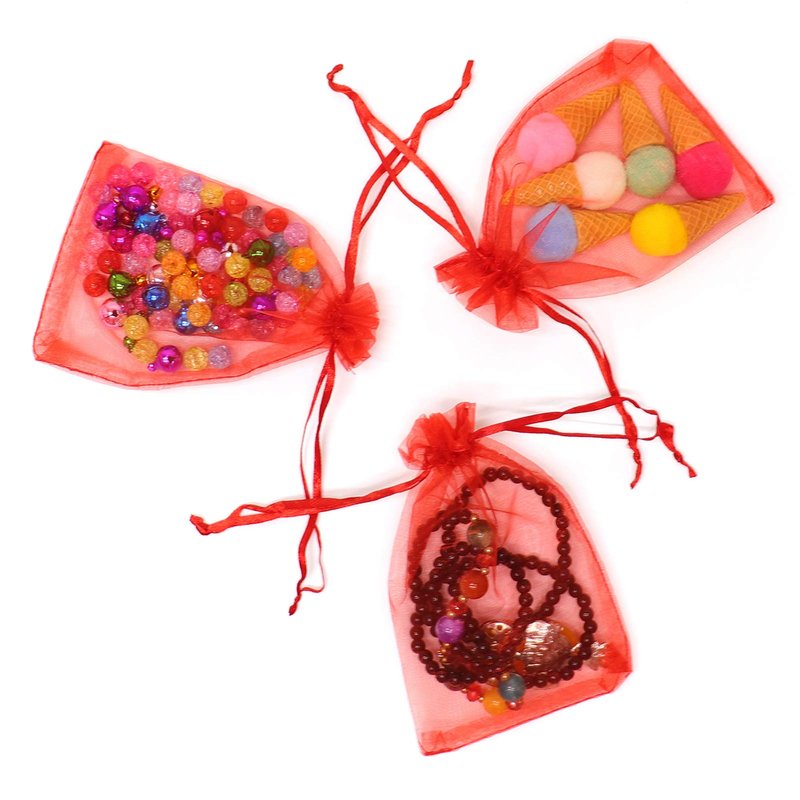 Bezall 100Pcs Red Organza Gift Bags 3.5x4.5, Small Christmas Candy Bags with Drawstring for Baby Shower, Wedding, Party Favor Pouches