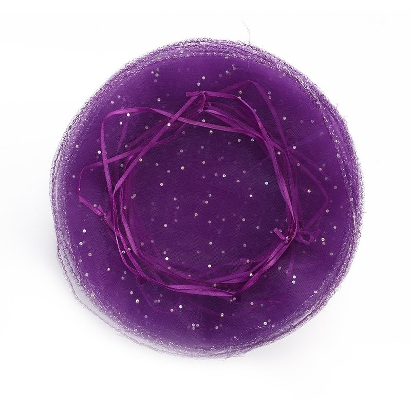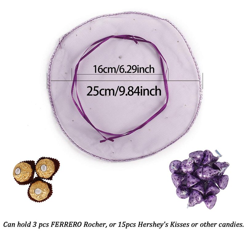 Bezall 50Pcs Organza Tulle Circles with Drawstring, 9.8 Inch Round Mesh Jewelry Candy Pouch Christmas Wedding Party Favor Gift Bags (Purple)