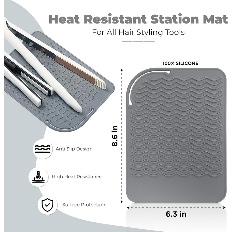 - Heat Resistant Mat - Protect your surfaces from burns, scalding and other damage with our heat-resistant mat. Our mat is made from the highest quality silicone and is designed to hold hot styling tools, flat irons, and curling irons, keeping your surfaces safe while keeping your tools within reach.