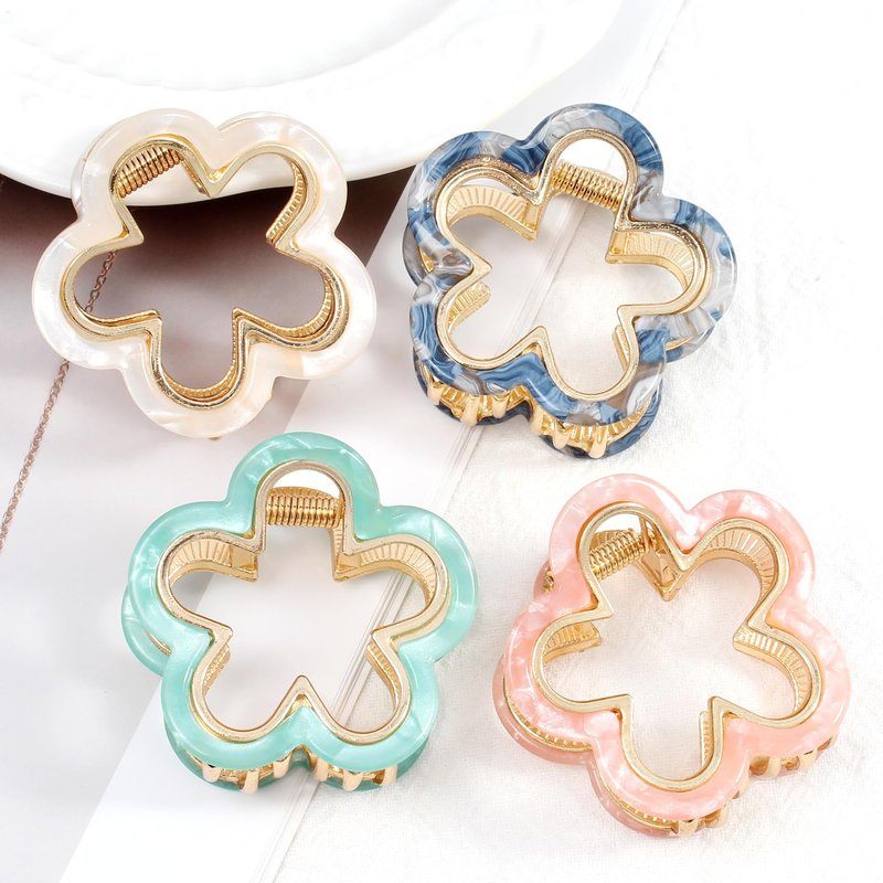 Bgffuy Medium Metal Hair Claw Clips for Women Small Flower Hair Clips for Thick Hair and Thin Hair 4Pcs (4 colors)