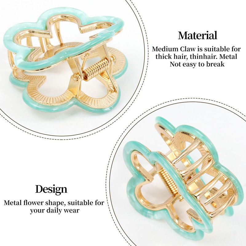 - {SCOPE AND OCCASIONS}—Small to medium size metal flower hair clips are suitable for any hair style, whether you have an updo, thick hair, or thin hair. What's more, hair claws can be worn on any occasion from casual to sporty, perfectly fitting your needs and matching your outfits. Can make you look more elegant and charming