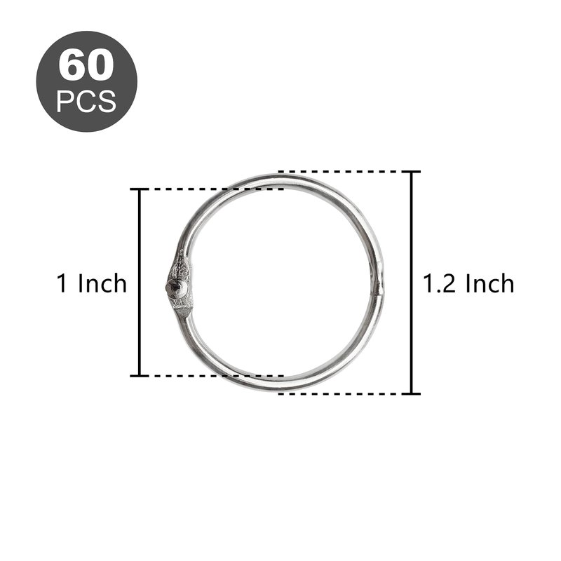 BGJRBY Loose Leaf Binder Rings 1-Inch(60 Pack) Office Book Rings, Nickel Plated Steel Binder Rings, Key Rings, Metal Book Rings, for School,Sliver