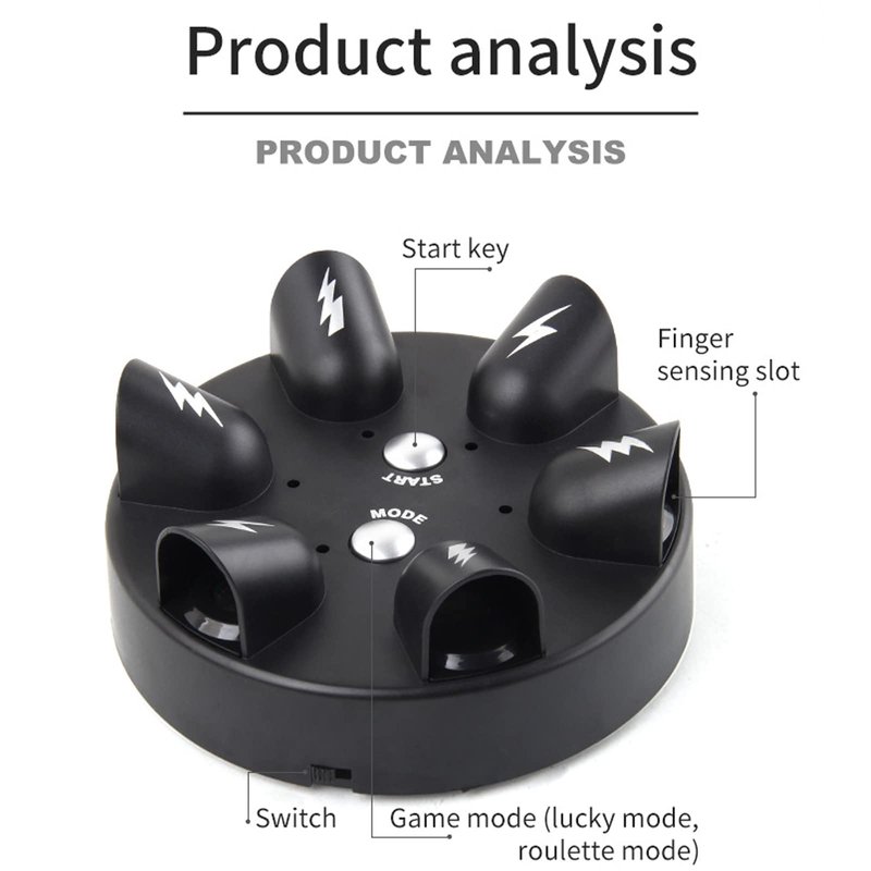 - 2-6 persons are perfect to play with, put your finger into the small, light random rotation, when the voice sobbing sopped when the indicator light which refers to the game player, "Loser" fingers will be a shock