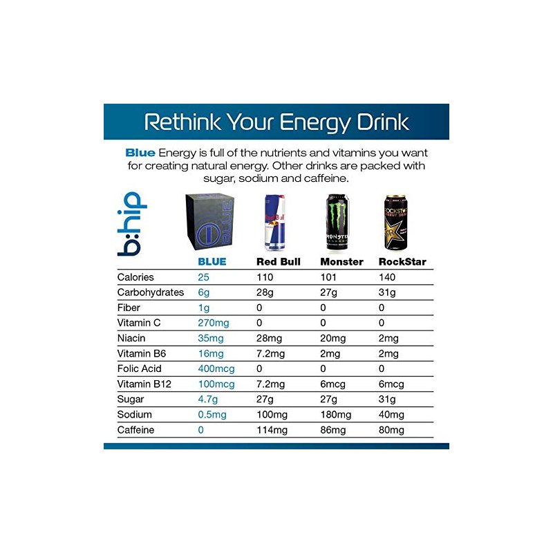 Bhip I -Blue Natural Energy Drink - 100% Natural - No Crash - Energy That Last for Hours - 30 Packets/Box - Vitamins & Amino Acid Supplement