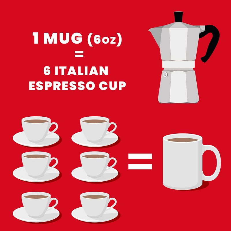 - One size for each need: Moka Express sizes are measured in Espresso Cups, coffee can be enjoyed in Espresso Cups or in larger containers