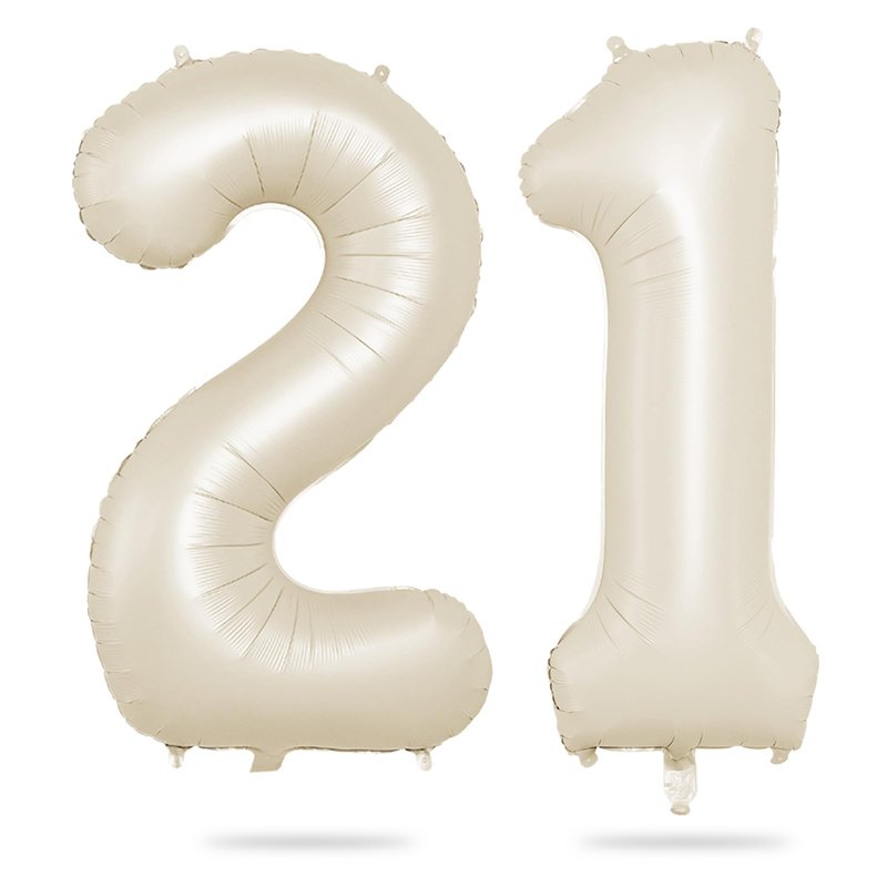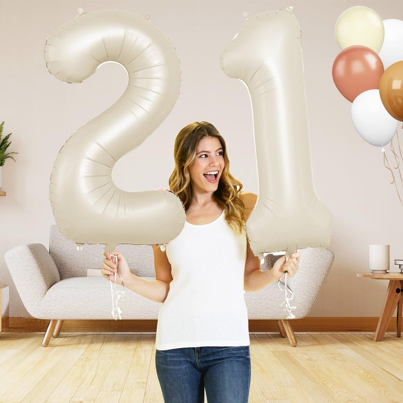 - What You Get - Our exquisite cream white number balloons include: 1 x 40-Inch number "2" balloons, 1 x 40-Inch number "1" balloons, and 1 straw. The 40-inch size of the balloon ensures that it stands out, adding a touch of grandeur to your decorations. Its cream color adds a sophisticated and neutral tone, making it versatile for 21st birthday party.