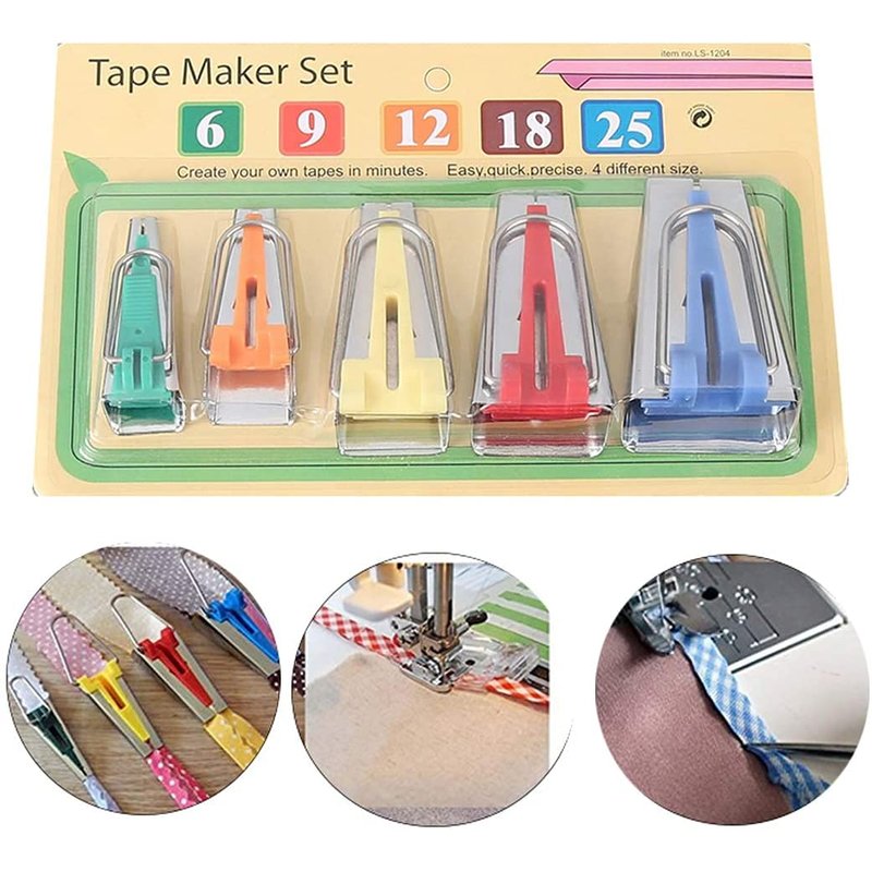 Bias Tape Makers Kit of 5 Sizes 1/4" 3/8" 1/2" 3/4" 1" DIY Quilting Tools Kit for Fabric Sewing and Quilting