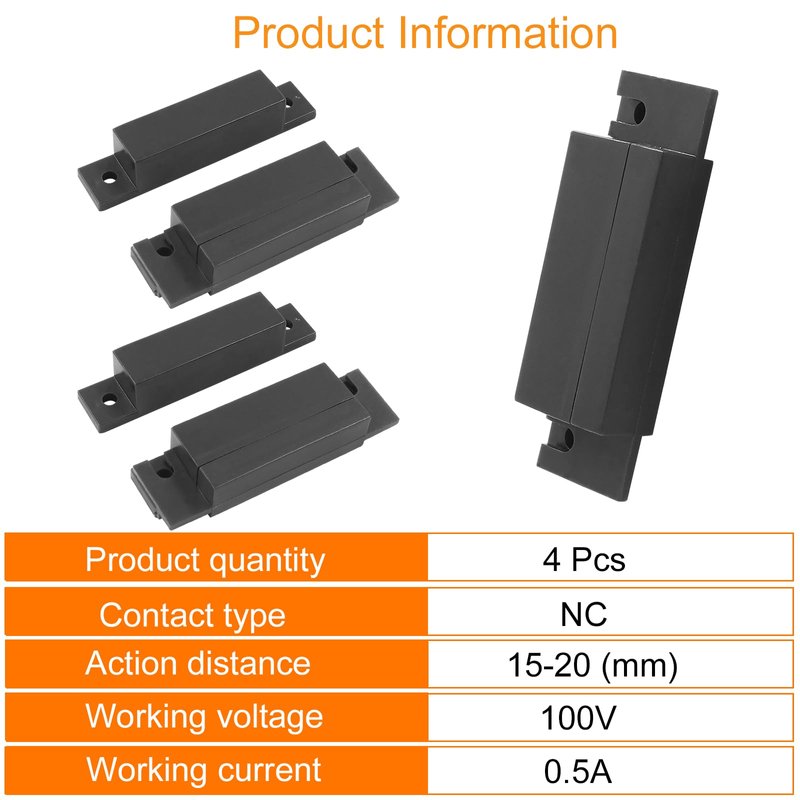 - Package content: You will receive 4 pieces of brown surface-mounted magnetic door switch. The rich quantity can perfectly meet your daily needs and applications. Contact type: NC; Action distance: 15-20 (mm); Working voltage: 100V; Working current: 0.5A.