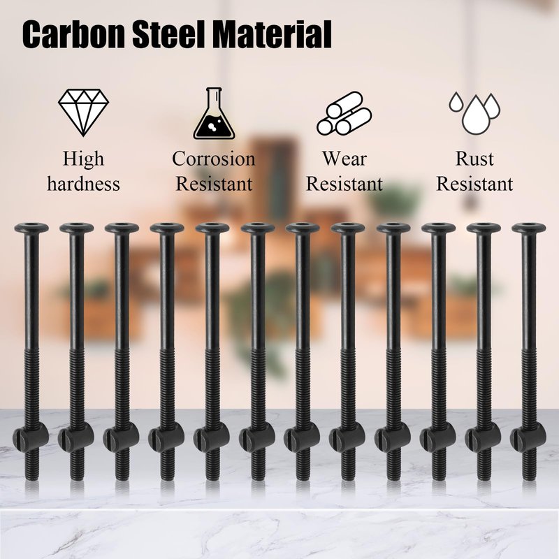 - Package Contents: 12 sets of black allen furniture bolts and barrel nuts, 1 pcs hex key. Easy for you to install and use.