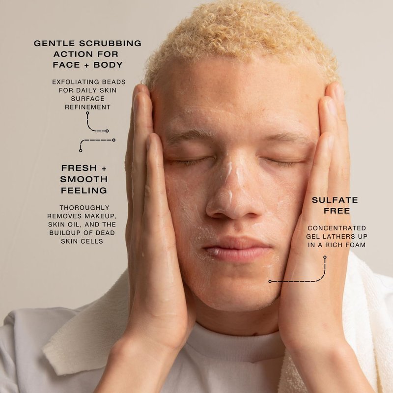 BIBA DE SOUSA The Daily Cleanser - Face & Body Wash with Exfoliating Beads, For Normal, Oily or Blemished Skin - Illuminates and Refines Skin Surface (8 oz)