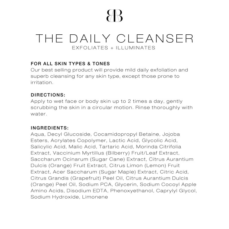 - AHAs COMBINED WITH SKIN HYDRATORS - With the combined benefits of AHAs and hydrating Sodium PCA and Glycerin, our Daily Cleanser not only effectively cleanses your skin but also addresses key concerns such as promoting a clear complexion, improving uneven skin tone, and preventing dehydration.