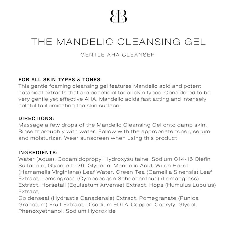 Mandelic Cleansing Gel - Biba de Sousa Los Angeles Mandelic Cleansing Gel is an iconic product made with a blend of skin loving antioxidant herbs to wash away the debris, sunscreen and excess sebum from the skin surface.