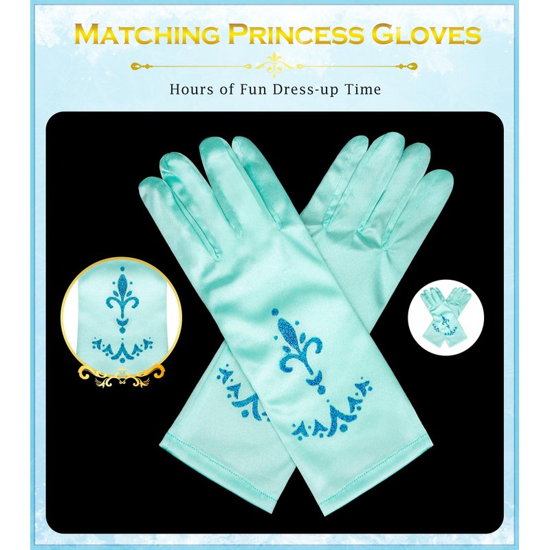 Princess Dress Up Accessories Princess Gloves for Little Girls, BIBUTY Blue Toddler Gloves for Girls Princess Dress Up Set, Costume Gloves Set Toy Gift for 3 4 5 6 Year Old Toddler Girls
