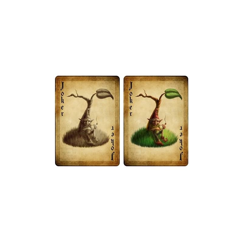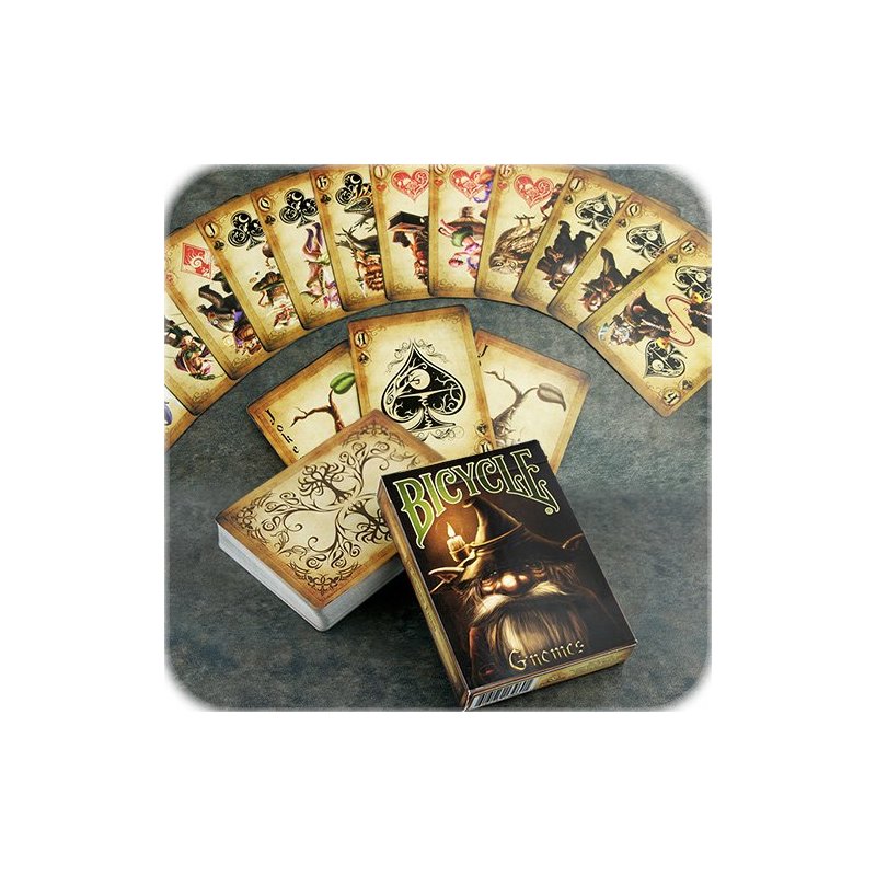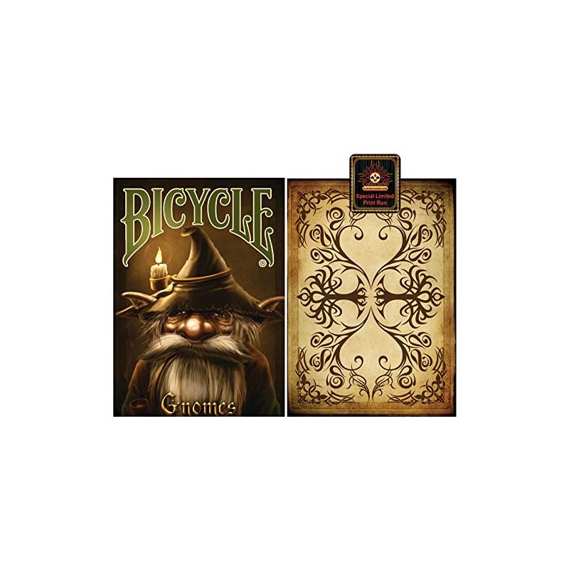 The Gnome deck was originally released December 2015. They completely sold out in less than 90 days. This is your chance to receive one of these rare sold out decks. This deck will have a limited print run of 2388 decks and a Special Limited Print Run Seal. Get a few now before they are all gone once again! Attested from the early 18th century. Gnomes are used in Alexander Popes "The Rape of the Lock". The creatures from this mock-epic are small, celestial creatures which were prudish women in their past-lives, and now spend all of eternity looking out for prudish women (in parallel to the guardian angels in Catholic belief). Other uses of the term gnome remain obscure until the early 19th century, when it is taken up by authors of Romanticist collections of fairy tales and becomes mostly synonymous with the older word goblin. 100% custom designed Bicycle playing card deck.