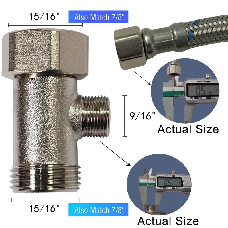 4)Package include: 1 Pcs 7/8inch x 7/8 inch x 9/16 inch Add-A-Tee valve angle stop