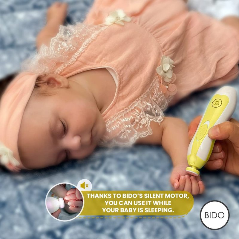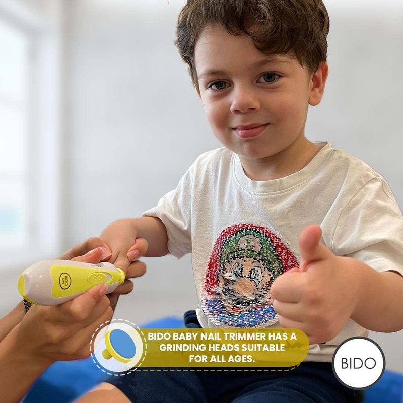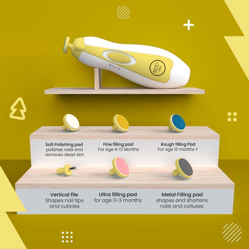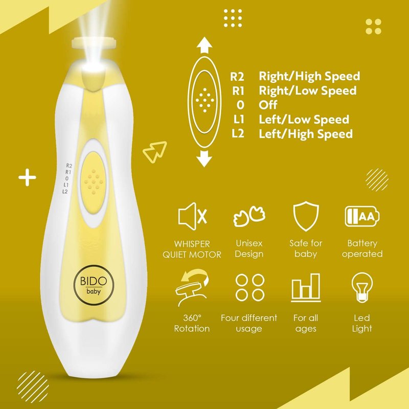 BİDO Baby Nail Trimmer File Electric-Safe Baby Nail Clippers,Manicure Kit for Newborn Toddler and Kids,6 Grinding Heads and LED Light, Pink or Blue (Yellow)