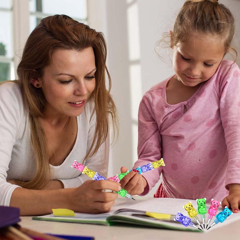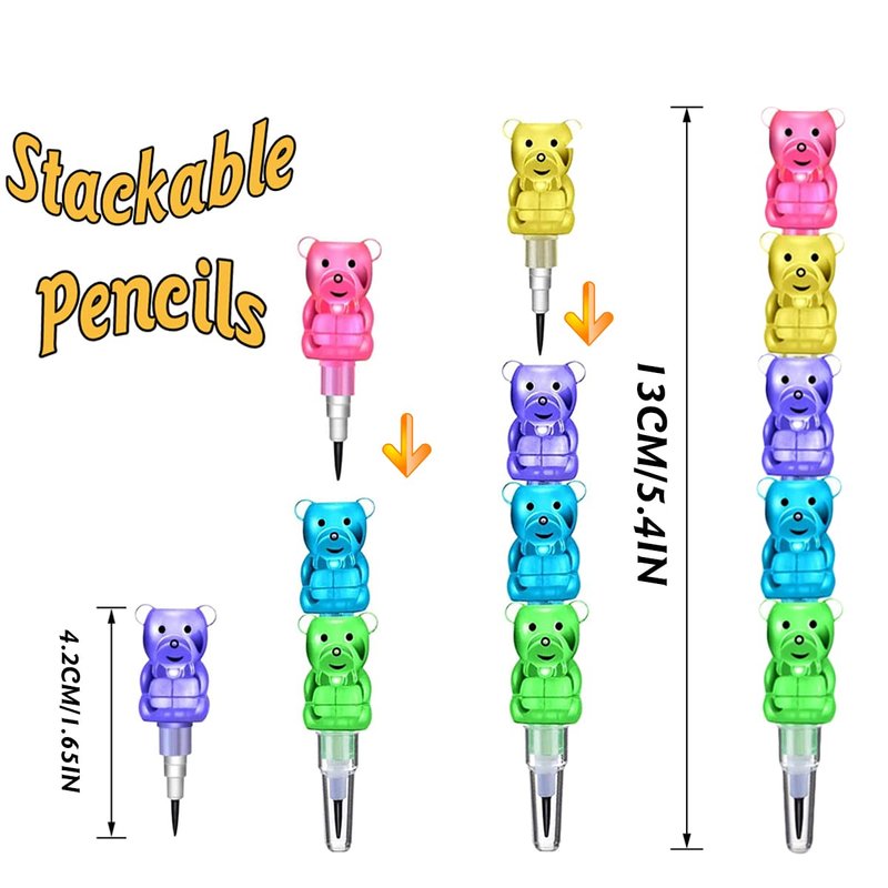 - 🧸High Quality Material - Our bear shaped stacking pencils are made of high quality plastic with a smooth surface and comfortable grip, non-toxic and odorless, durable and long-lasting.