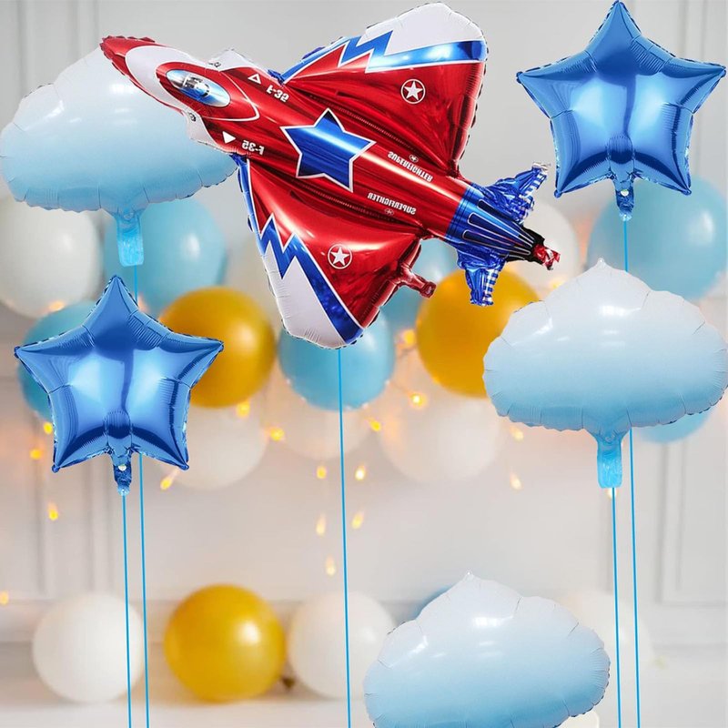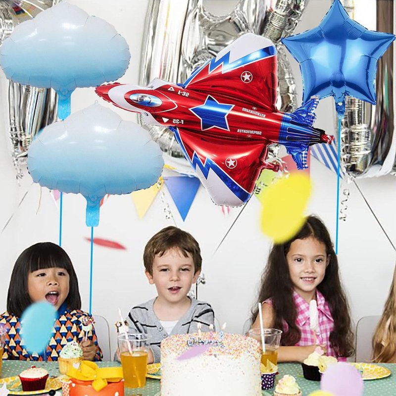 BIEUFBJI 42" Fighter Jet Airplane Ballons Cartoon Airplane Birthday Party Decorations Airplane Aviator Adventure Themed (7Pcs)
