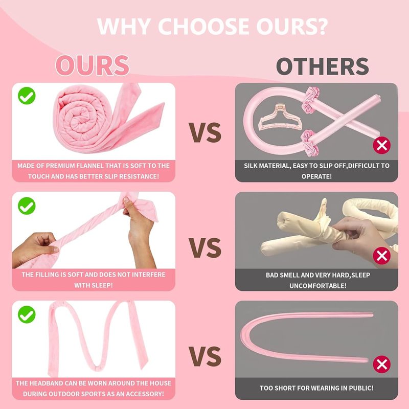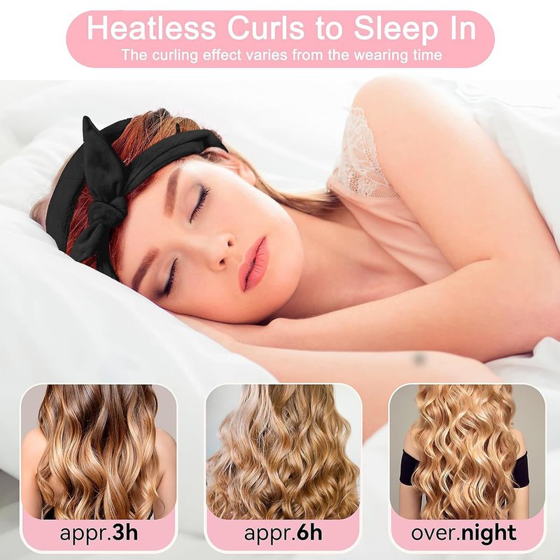 Our heatless curlers is approximately 63" long and made of soft velvet material outside. You only need to wrap your hair around the hair wrap curler before going to bed, and wake up the next morning, you will easily get amazing natural curls!.