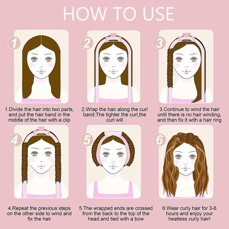 - 【Easy to Use & Tips】1. Lightly damp your hair or drying your hair to slightly damp after shower 2. Fix the middle part of the curling iron on the top of the head with a bobby pin. 3. Wrap the hair on both sides around the curling iron respectively. When the hair is braided to the end, secure it with a hair tie. 4. Cross the two ends of the hair band behind the head, tie a knot in front of the hairpin on the top of the head, and remove the hairpin. Tips: you can refer to the instructions to use.