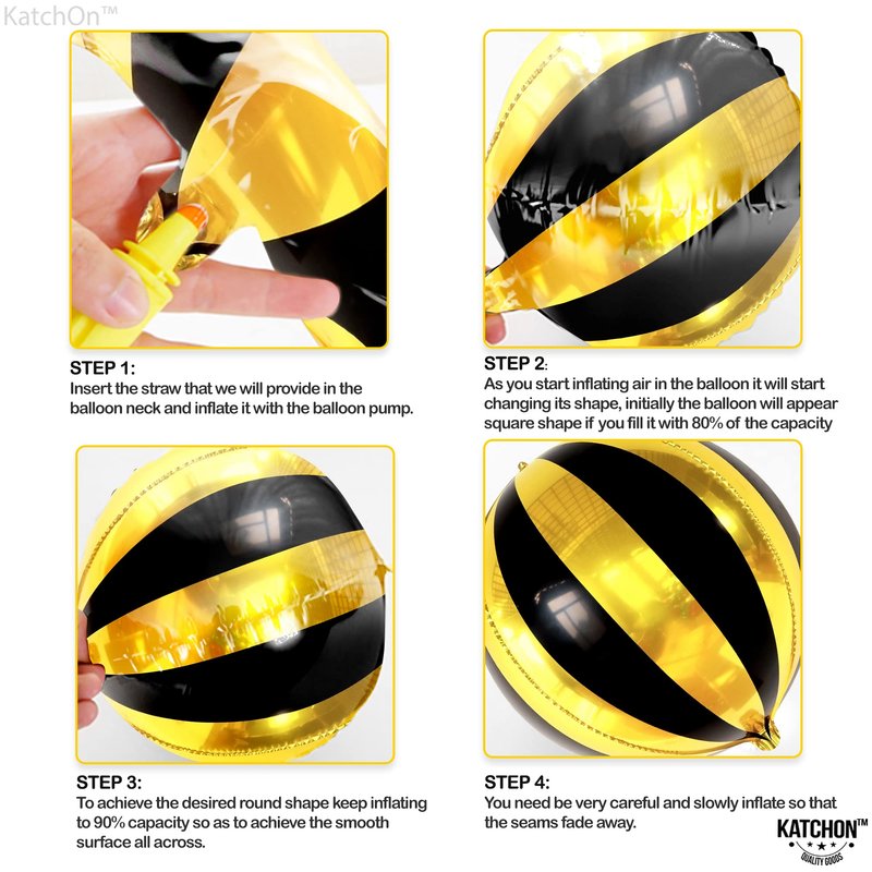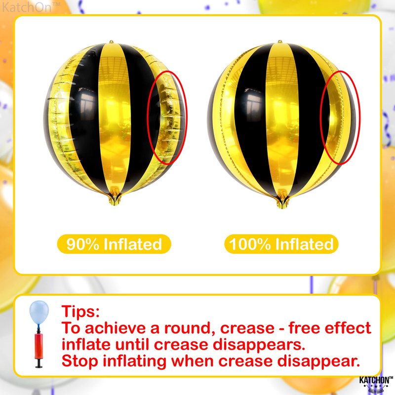 - BIG SIZE : 22 INCH | SHINY 4D FOIL BLACK AND GOLD STRIPE BALLOONS : This Classy and elegant large black and gold metallic balloons are big enough to be noticed from distance and will be the highlight point in your black gold arch backdrop for a serene and royal entrance with black and gold foil balloon. If one round gold black foil balloons can create such a splendid effect then we have got you 6 of mylar black and gold helium balloons for 70s decorations for party.