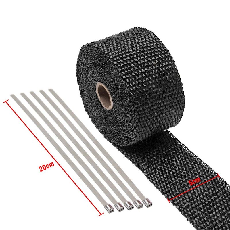 big-autoparts 2 inch by 16.5 feet Exhaust Manifold Heat Wrap Thermal Wrap Tape and Stainless Ties Kit,Black