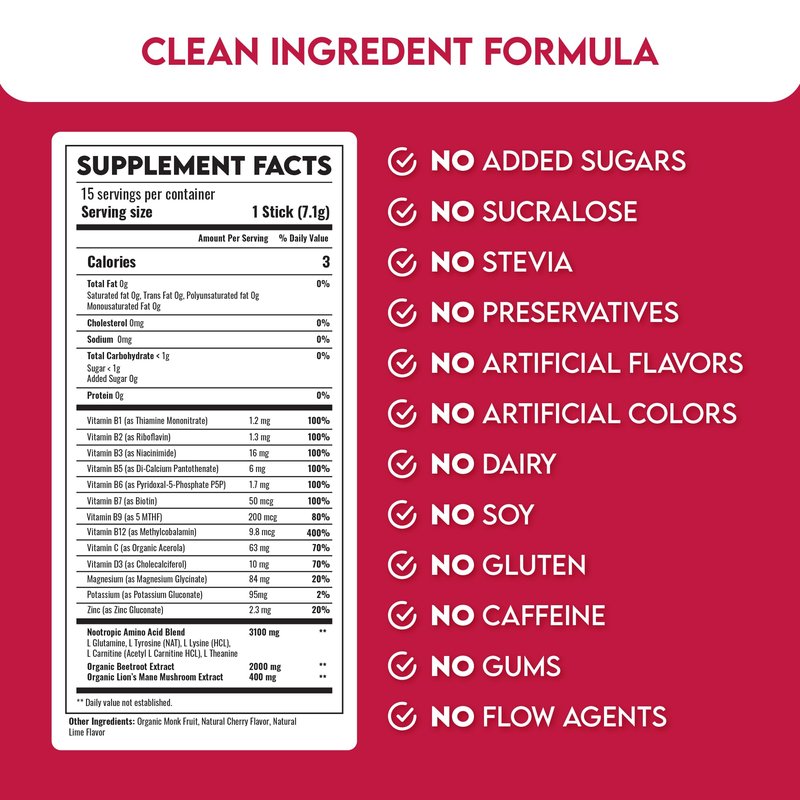- 3,500mg Natural Nootropics: Organic Lion's Mane Extract (10:1) + Brain-Boosting Amino Acids