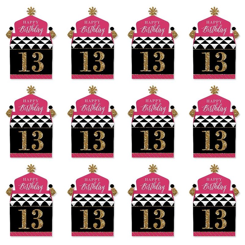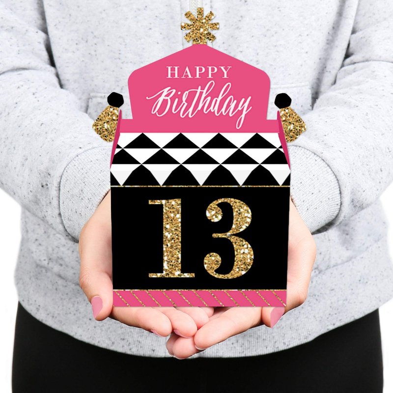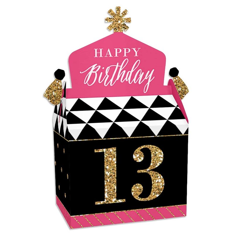 Big Dot of Happiness Chic 13th Birthday - Pink, Black and Gold - Treat Box Party Favors - Birthday Party Goodie Gable Boxes - Set of 12