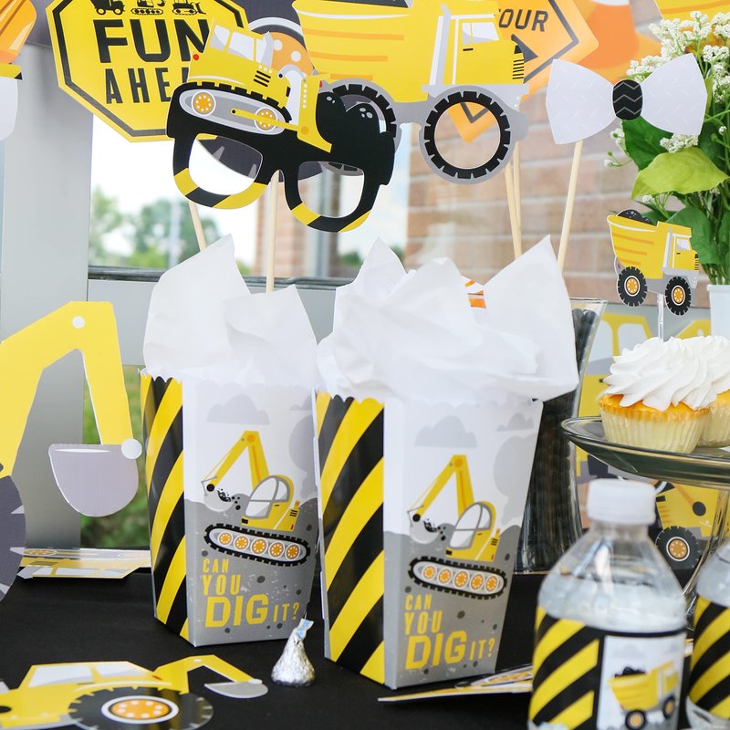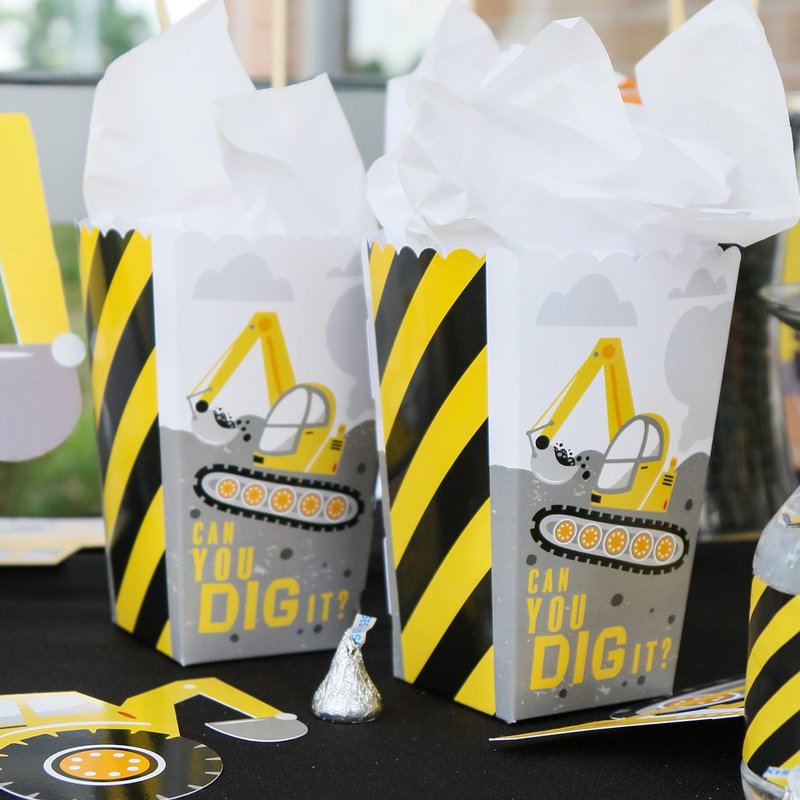 - Dig It - Construction Party Zone Favor Popcorn Treat Boxes INCLUDES 12 Dig It - Construction Party Zone party baby shower or birthday party favor boxes. Dig It - Construction Party Zone treat boxes are perfect for any event. The construction theme is great for a baby shower or birthday party.