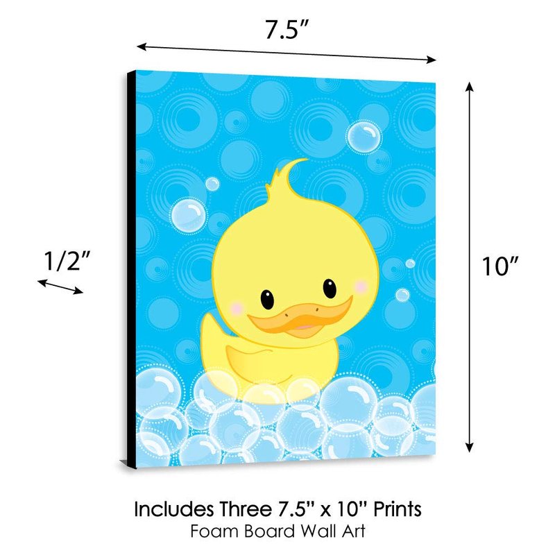 - Ducky Duck Wall Art & Kids Room Decor SIZE each 10 inches high x 7.5 inches wide x .5 inches thick. Rubber ducky lightweight art prints will arrive ready to use - no frame needed. The black edge gives each print a modern, finished look.