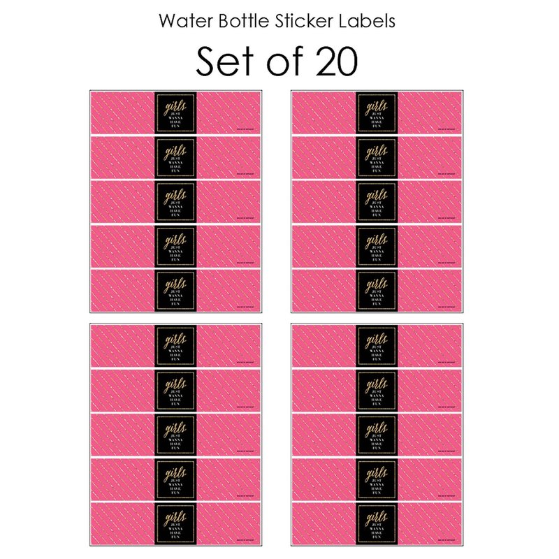 - Girls Night Out Water Bottle Sticker Labels INCLUDES 20 DIY water bottle labels. Girls Night Out DIY party supplies are perfect for quickly dressing up any beverage bottle in your party theme.