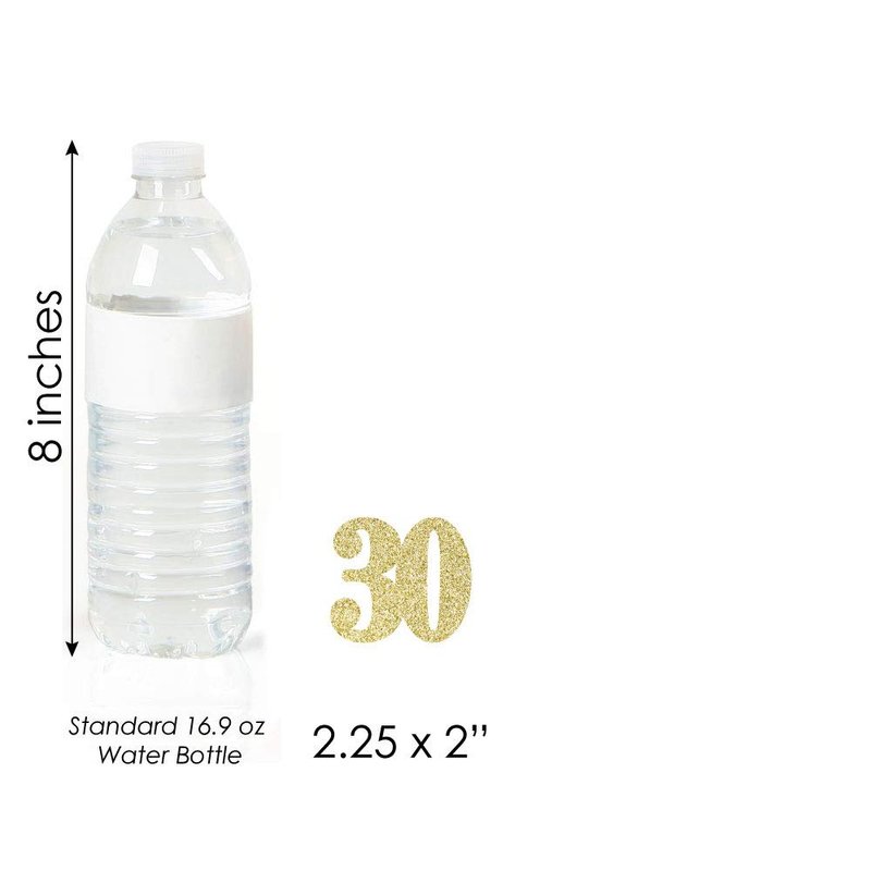 - PERFECT PARTY DECORATIONS: Gold Glitter 30 cut-out numbers come in a set of 24 and MEASURE 2 inches x 2.5 inches. Real gold glitter number cut outs look great scattered down buffet and dining tables, and tied as tags on party favors, or adhered to glassware and candy buffet jars as birthday party and anniversary decorations.