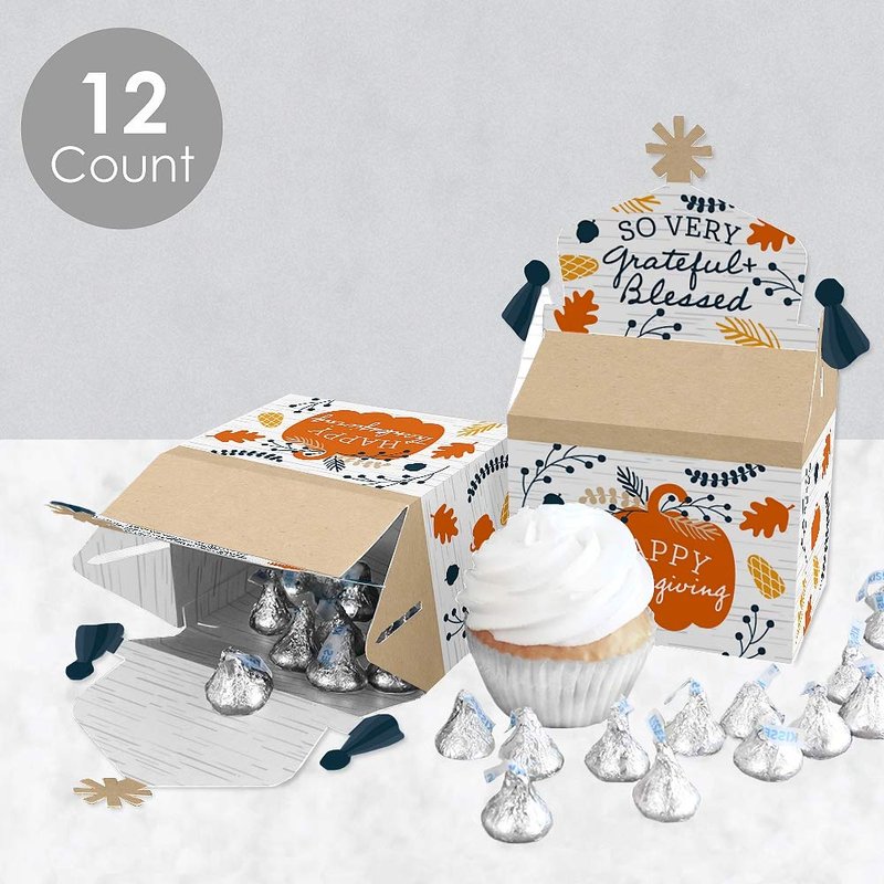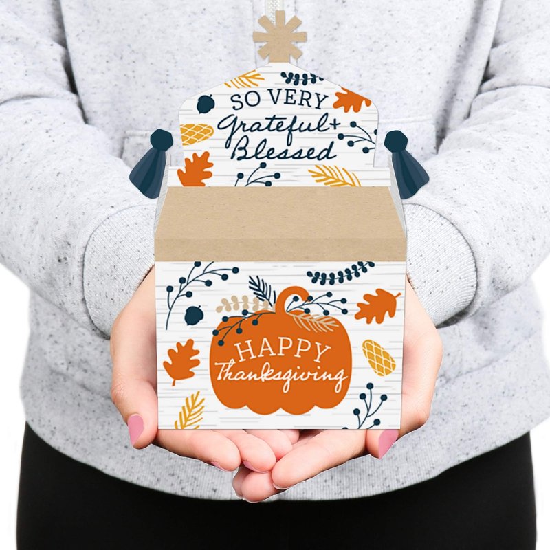Big Dot of Happiness Happy Thanksgiving - Treat Box Party Favors - Fall Harvest Party Goodie Gable Boxes - Set of 12