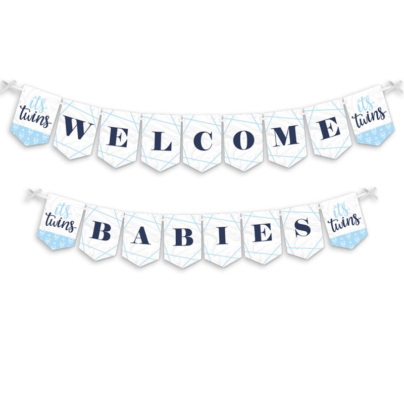 - It’s Twin Boys - Blue Bunting Banner is an impressive baby shower decoration for your party. Boys Baby Shower Bunting Banner Decoration Kit INCLUDES It’s Twin Boys - Blue WELCOME BABIES letter pennants, blue themed pennants, satin ribbon and non-marking wall mounts for hanging.